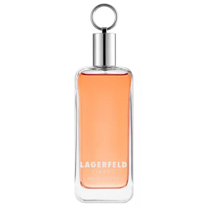 El frasco es de cristal transparente dejando ver el líquido en color anaranjado y el tapón es plateado con una anilla en la parte alta.