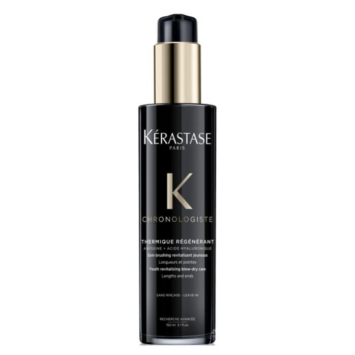 El Protector Térmico Chronologiste de KÉRASTASE es un tratamiento sin aclarado que revitaliza el cabello, proporcionando 24 horas de protección contra el encrespamiento*.