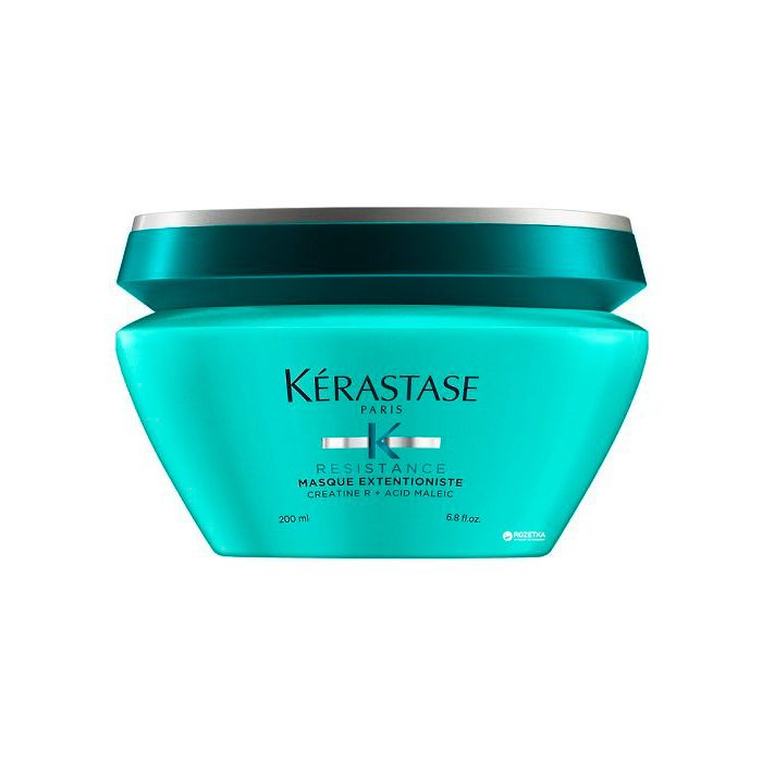 Resistance Masque Extentioniste Mascarilla de Kérastase: Es una mascarilla perfecta para el cabello débil y quebradizo que restaura la fibra y aporta brillo proporcionando un aspecto más bello, suave, elástico y saludable. La fibra capilar se refuerza, las puntas abiertas se sellan y se evita la rotura permitiendo que el cabello alcance una longitud ideal.