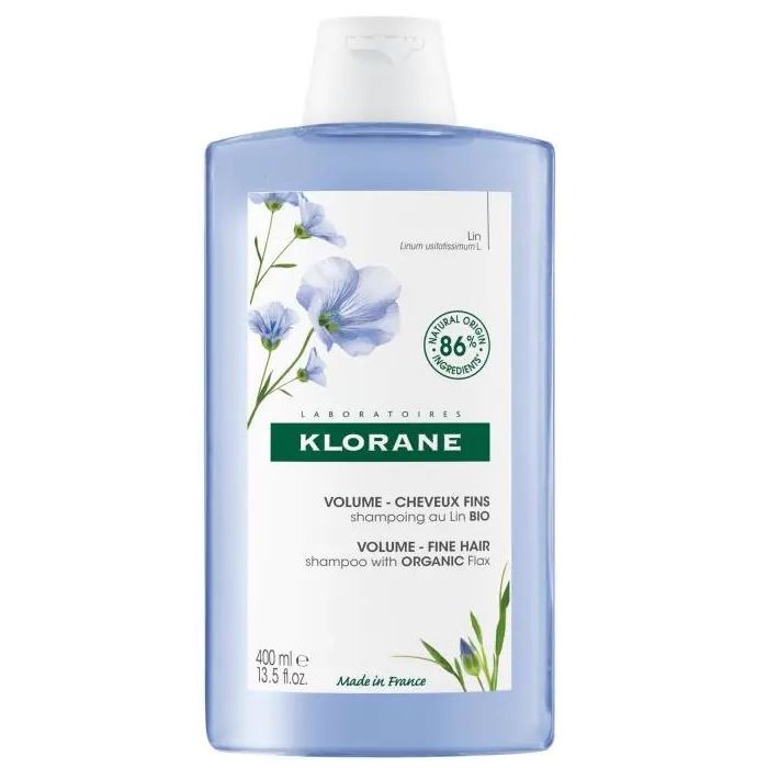 Este champú de Klorane de fibra de lino limpia, aporta textura y revela el volumen natural del cabello fino y falto de volumen.