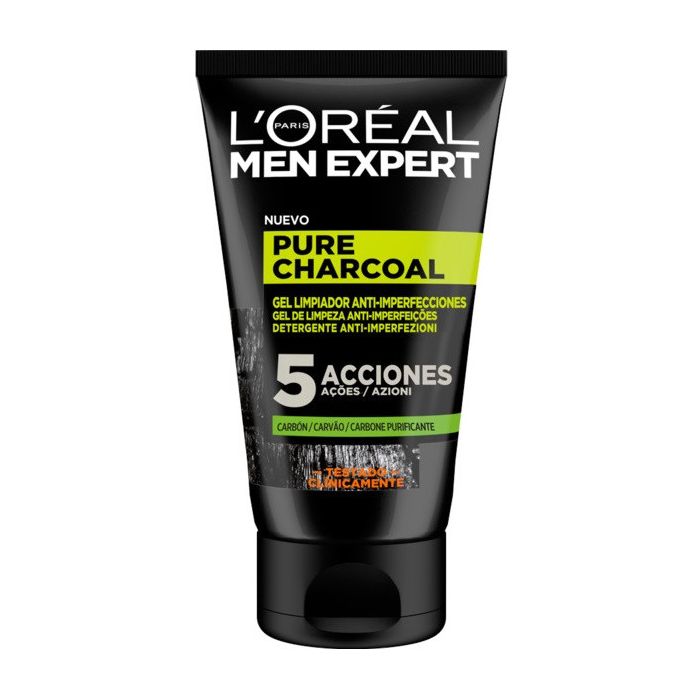 Men Expert Gel Limpiador Facial Pure Charcoal de L’Oreal París. Con el gel limpiador limpia y reduce diariamente las imperfecciones.