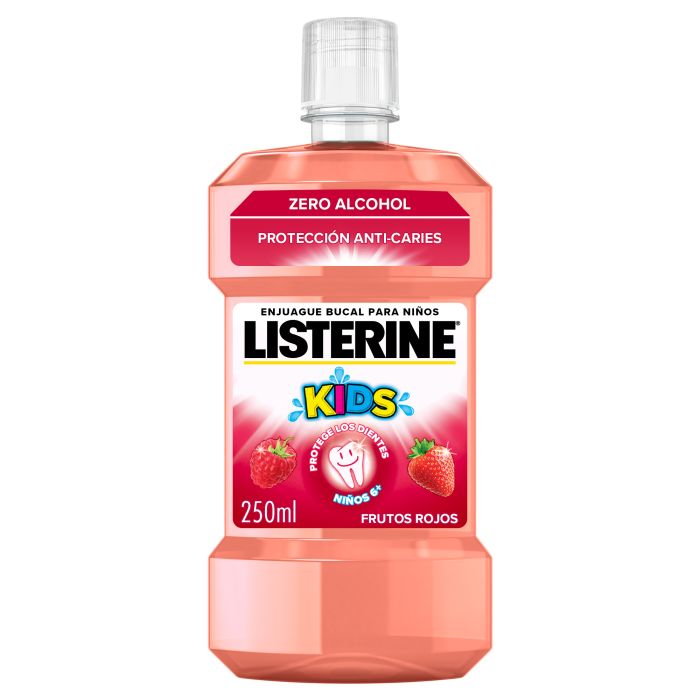 El Enjuague Bucal para Niños Frutos Rojos de LISTERINE es un enjuague bucal para niños formulado con flúor para ayudar a proteger los dientes contra la caries cuando se utiliza después del cepillado.
