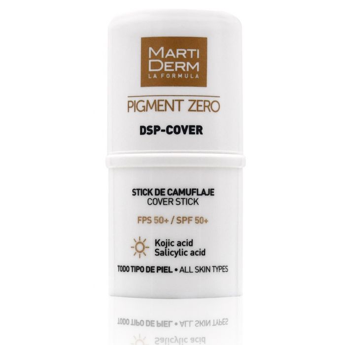 El Pigment Zero DSP-Cover Stick de Martiderm posee una protección 50+ y se puede combinar perfectamente con el tratamiendo antimanchas de día.