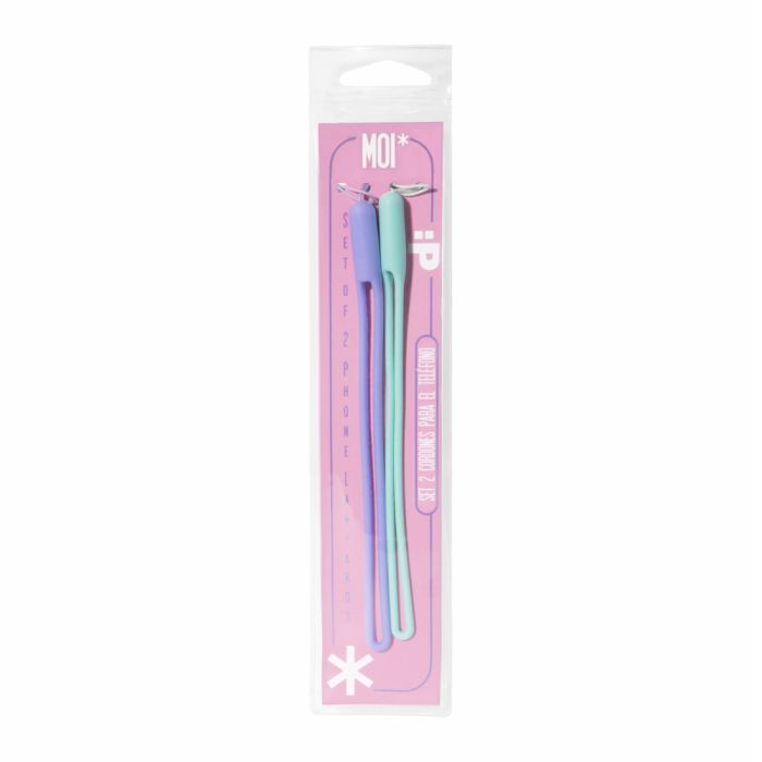 Set 2 Cordones para el Teléfono MOI* El accesorio más fashion de la temporada para móviles, tablets o cámaras. Estos cordones de silicona de distintos colores son ideales para colgar tus dispositivos desde la muñeca y tenerlos siempre a mano. Introduce la parte más pequeña de la cuerda en los dos agujeros de tu funda de teléfono, o del propio dispositivo. Dale un nudo y podrás llevar tu cordón a todas partes.