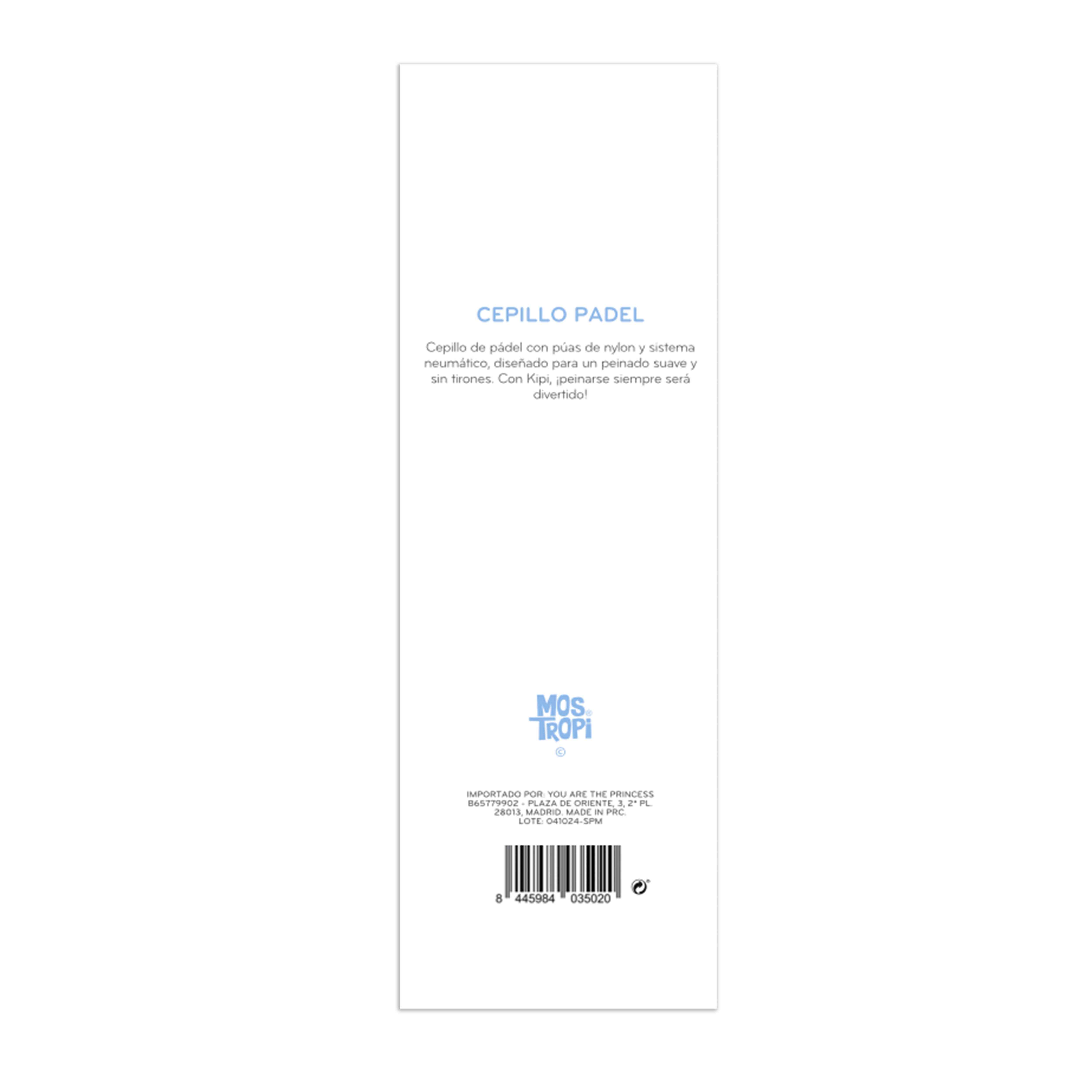 Cepillo padel con púas de nylon y con sistema neumático que hacen el peinado aún más suave y sin peligro de tirones.