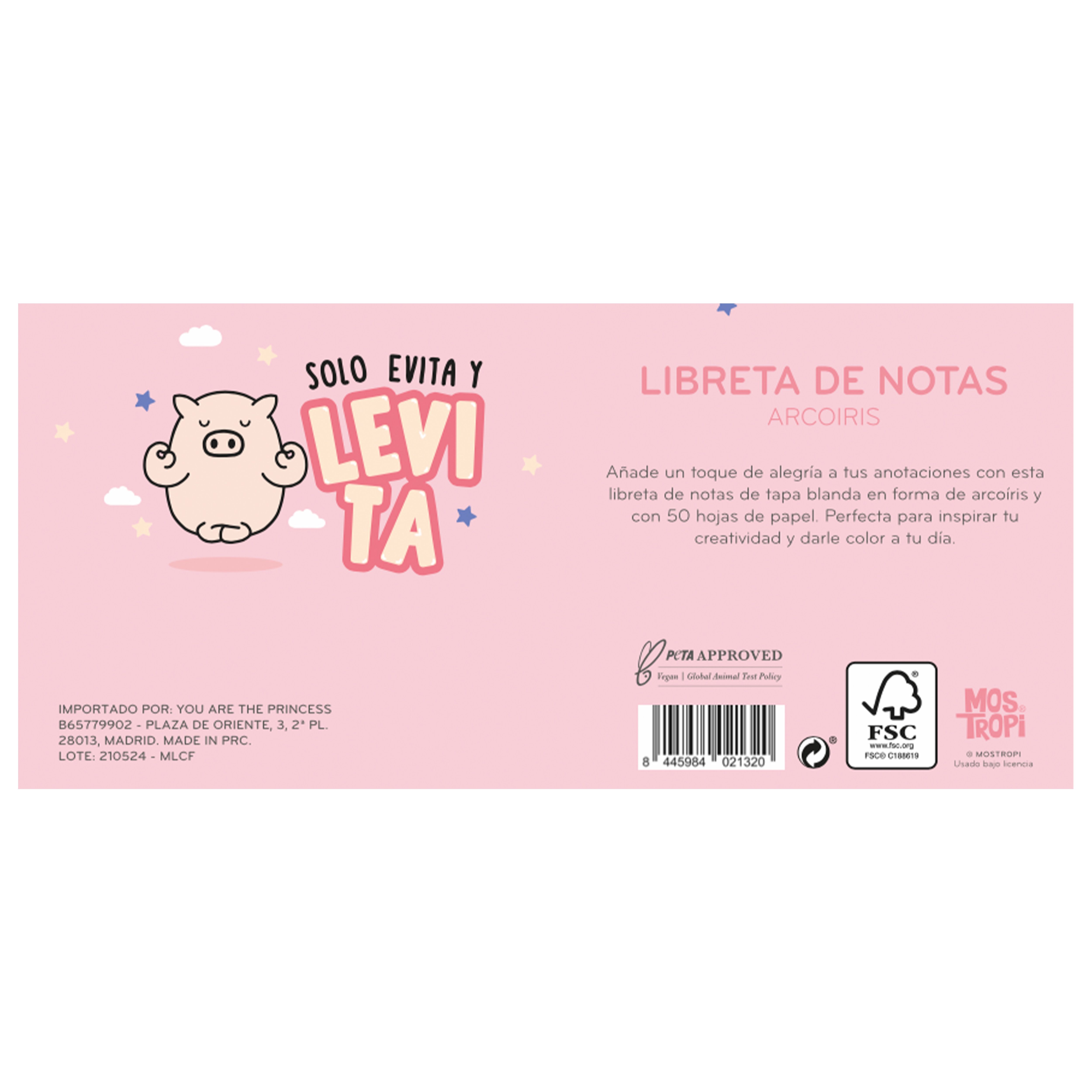 Añade un toque de alegría a tus anotaciones con esta libreta de notas de tapa blanda en forma de arcoíris y con 50 hojas de papel. Perfecta para inspirar tu creatividad y darle color a tu día.
