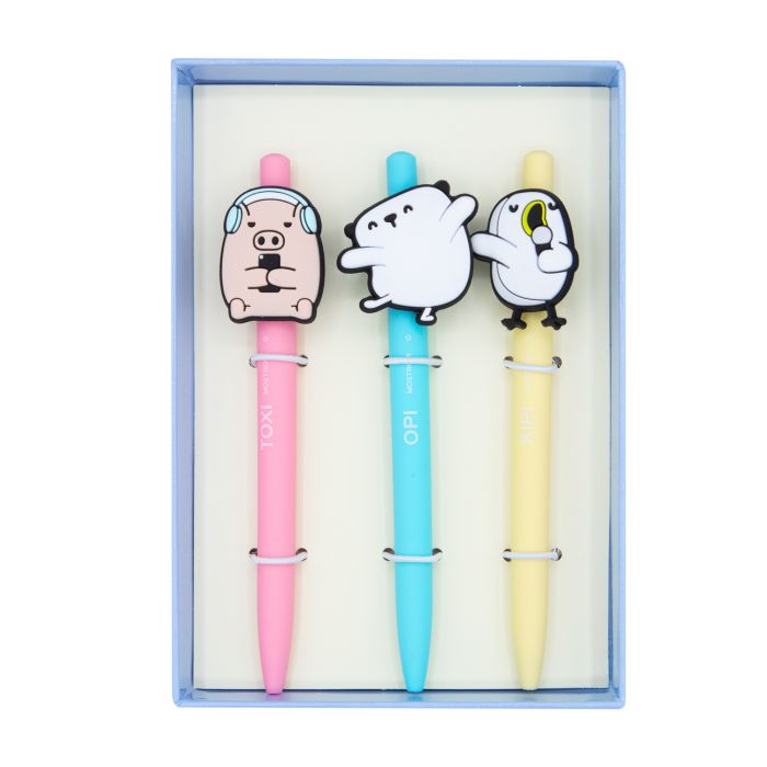 Pack de tres bligrafos con OPI, TOXI y KIPI y frases motivadoras para tu día a día.