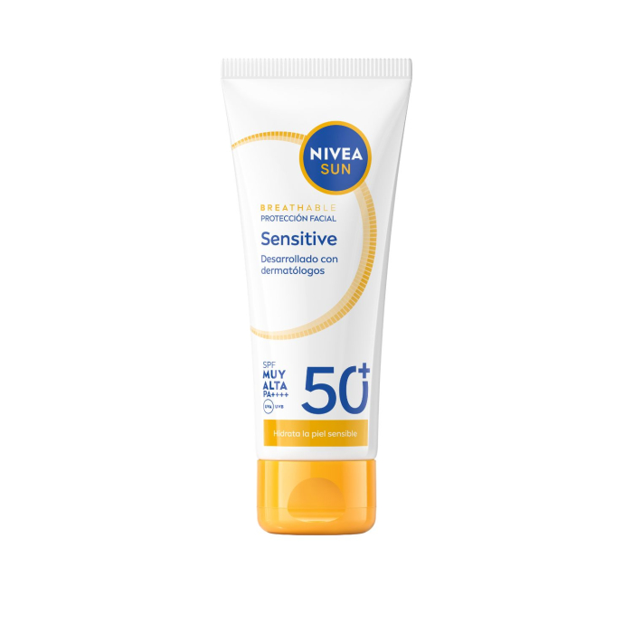NIVEA ha desarrollado Sun Protector Solar Facial Sensitive SPF50+ con una fórmula transpirable que ofrece protección UV SPF 50+ sin obstruir los poros, ayudando a mantener el equilibrio natural de la piel.