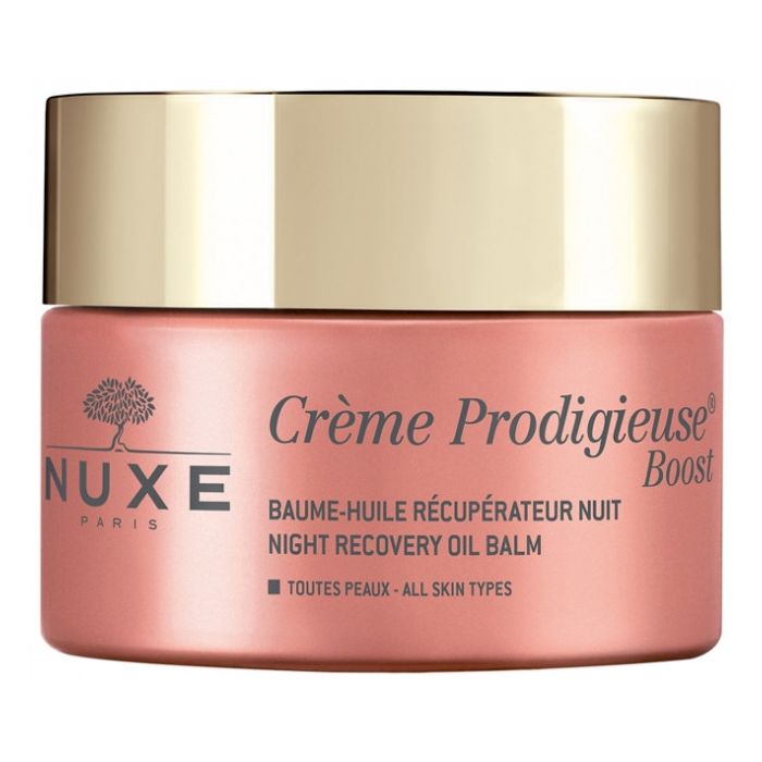 NUXE Bálsamo Aceite Recuperador de Noche con notas frescas y chispeantes realzadas por un acorde de jazmín verde, litchi rosa y madera blanca.