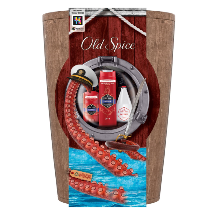 OLD SPICE presenta el OLD SPICE Set de Regalo Captain Barril de Madera, una opción perfecta para el cuidado personal.
