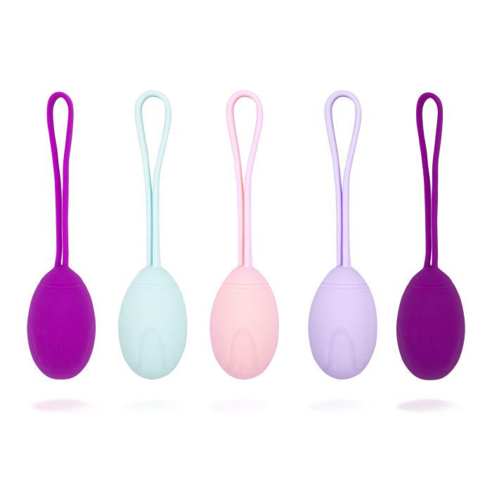 El juego completo consta de 5 bolas Kegel con diferentes pesos (azul claro: 37 gr, rosa suave: 45 gr, lavanda: 53 gr, violeta: 71gr y morada: 110gr) para que puedas comenzar poco a poco y avanzar lentamente y a tu ritmo, hasta llegar a la bola más pesada. Aplica un poco de lubricante a base de agua en una de las bolas e insértala suavemente en la vagina. Tensa los músculos del piso pélvico para mantener la bola en su lugar.