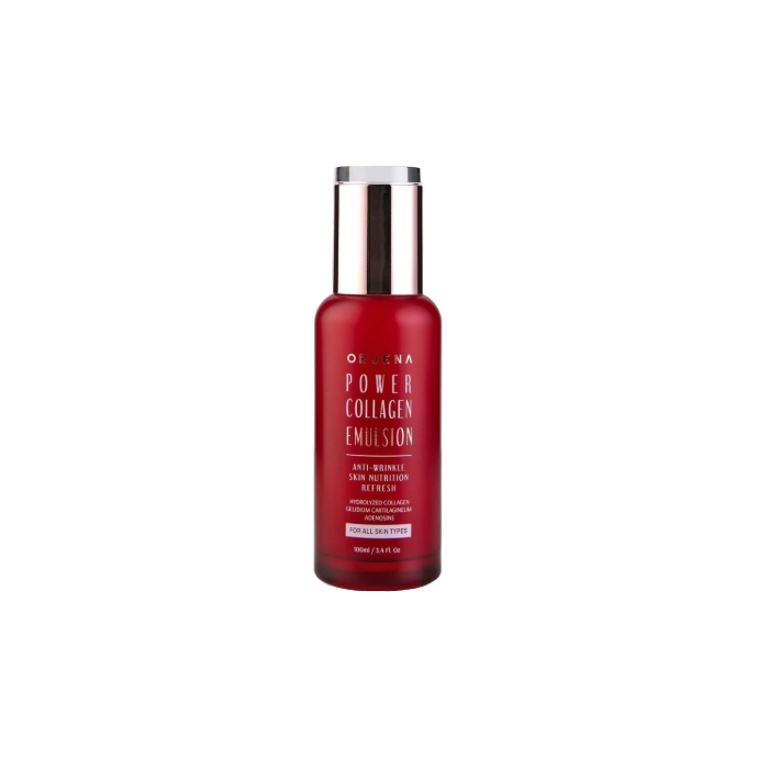 La fórmula de la emulsión facial antiarrugas Power Collagen Emulsion de ORJENA contiene colágeno hidrolizado, que estimula la producción natural de colágeno en la piel. Además, la emulsión facial antiarrugas Power Collagen Emulsion de ORJENA incorpora adenosina, un componente que favorece la regeneración celular y ayuda a mantener una piel con mejor tono.