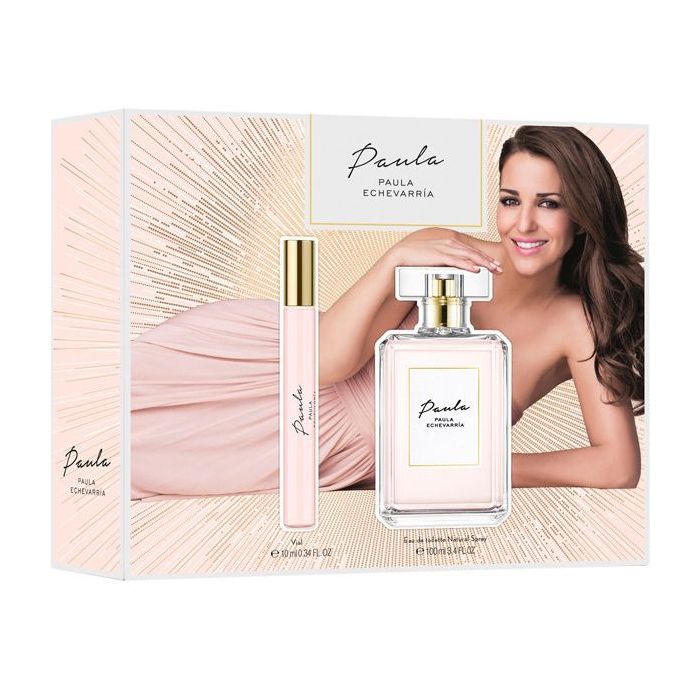 PUIG PAULA ECHEVARRIA SET: Estuche con el perfume de Paula Echevarría, creado por la casa Puig bajo la supervisión de la propia Paula Echevarría. Se trata de un perfume floral, con salida cítrica, que lleva rosas, jazmín, heliotropo y una base de sándalo y musk.