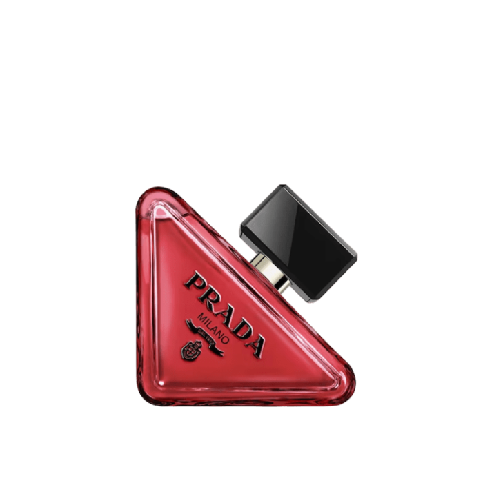 El frasco de Paradoxe Radical Essence mantiene la esencia vanguardista de la marca: minimalismo sofisticado con un giro audaz. Su forma triangular, inspirada en el logotipo de Prada, se presenta en un tono rosa intenso con acabados que evocan la textura Saffiano, distintiva de la casa. El contraste del logotipo negro sobre el rosa vibrante encarna la máxima expresión de esta nueva etapa: Radical Essence.