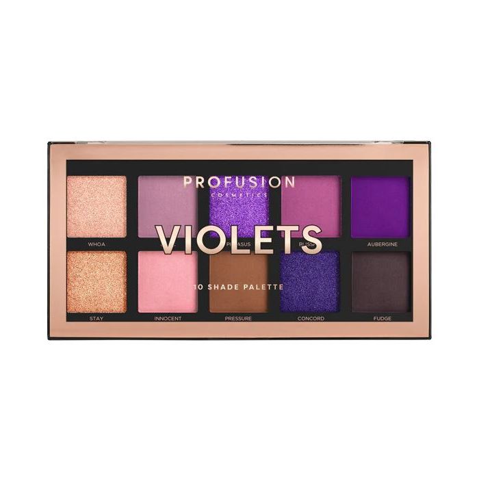 Con la Violets Paleta de Sombras 10 Tonos de PROFUSION, se pueden crear combinaciones que se adaptan a distintos momentos del día. La fórmula de la Violets Paleta de Sombras 10 Tonos asegura una aplicación uniforme y un acabado duradero.