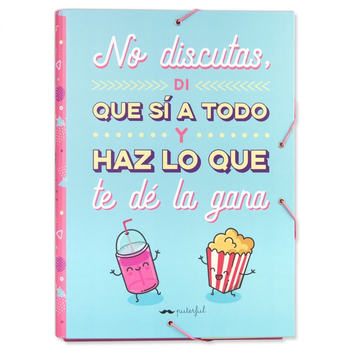Carpeta Gomas de Puterful son divertidas carpetas ideales para guardar tus documentos o para tus cosas del cole y adornadas con divertidas frases. Trae gomas que facilita el abrir y cerrar la carpeta.