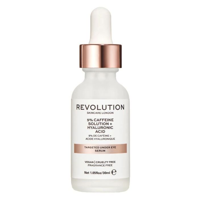 Sérum para contorno de ojos formulado con cafeína para ayudar a aclarar la apariencia de ojeras.