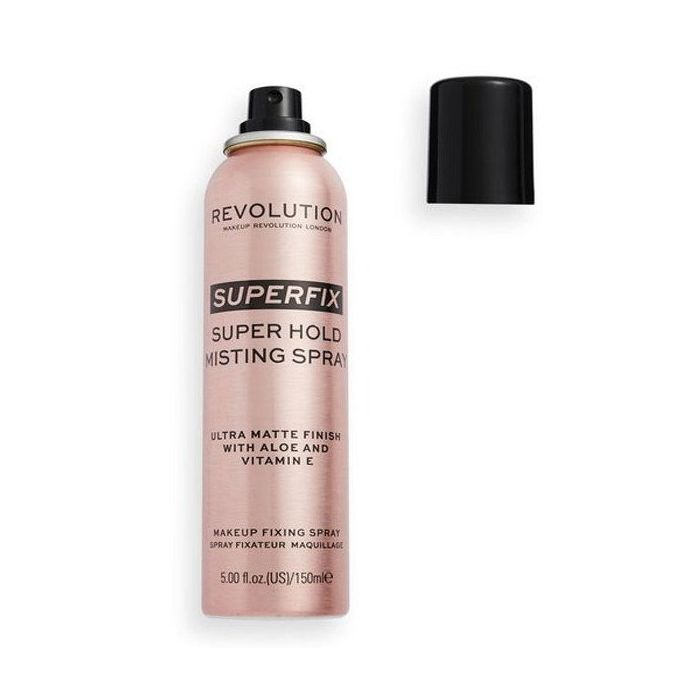 REVOLUTION Superfix Fijador del Maquillaje en Spray brinda un aspecto ultra mate y sin brillo que no se desvanecerá. Infundido con aloe y vitamina E, que calma la piel.
