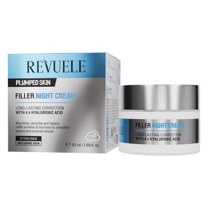 Formulada especialmente para pieles maduras, esta crema de noche proporciona una acción rellenadora, reparadora y nutritiva intensiva mientras duermes. Gracias a su tecnología con 4 formas de ácido hialurónico, actúa en todas las capas de la piel, aportando hidratación profunda y ayudando a reducir visiblemente arrugas y líneas finas, restaurando el volumen y la elasticidad.