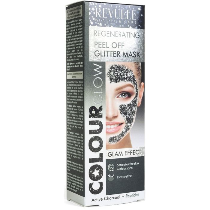 Mascarilla Regeneradora Colour Glow de Revuele es una mascarilla facial con carbón activo y péptidos, que promueve la recuperación intensiva de las células debilitadas, desintoxica y le devuelve firmeza al rostro.