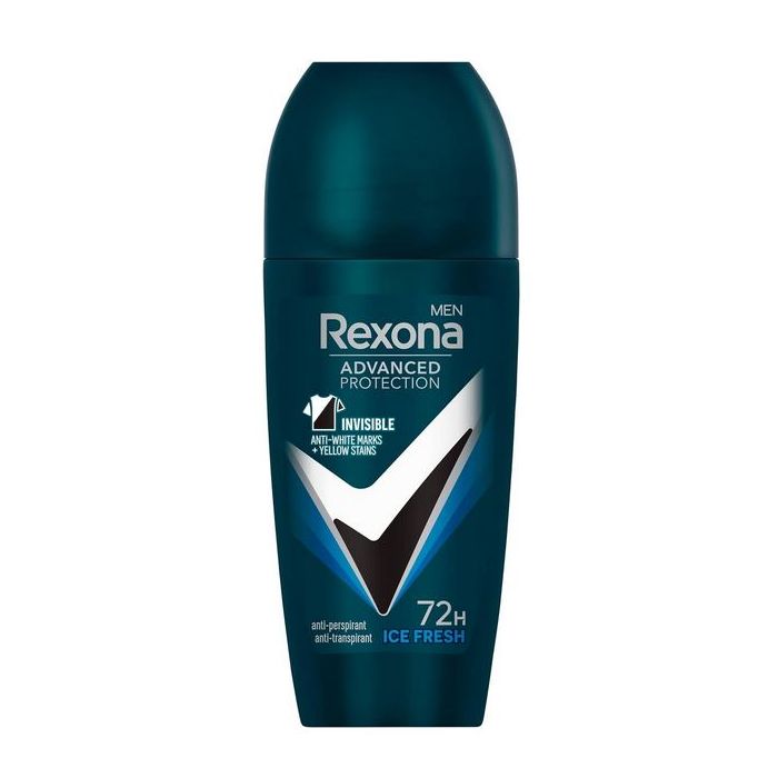 Advanced Protection Invisible Ice Desodorante Roll-On Men de Rexona es un desodorante sin alcohol, antitranspirante para hombre que evita las manchas.