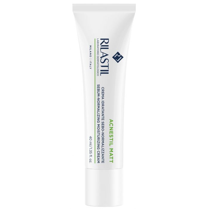 RILASTIL Acnestil Matt Crema contrarresta la dilatación de los poros y absorbe el exceso de sebo, manteniendo la piel seca y limpia.