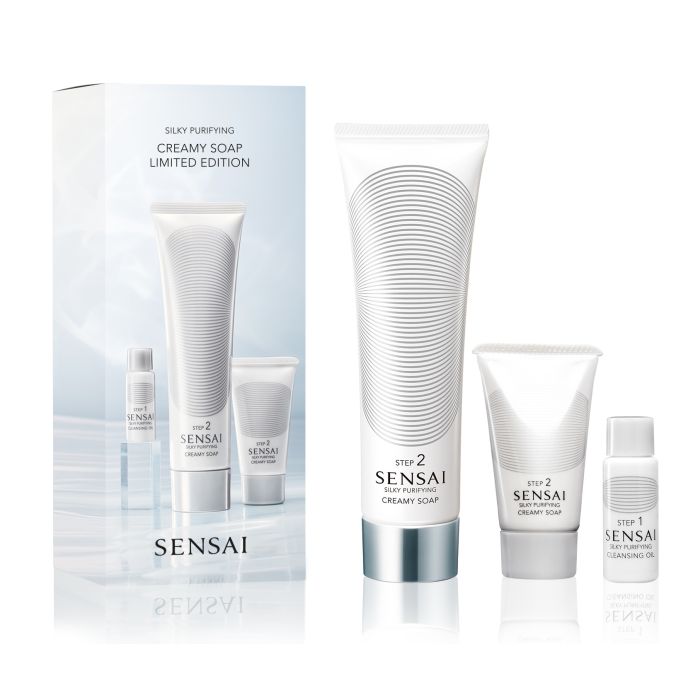 El Set Silky Purifying Creamy Soap de SENSAI es un jabón limpiador facial en formato crema que forma parte del ritual de Doble Limpieza de SENSAI. Este jabón limpiador facial está pensado como segundo paso del método de limpieza.