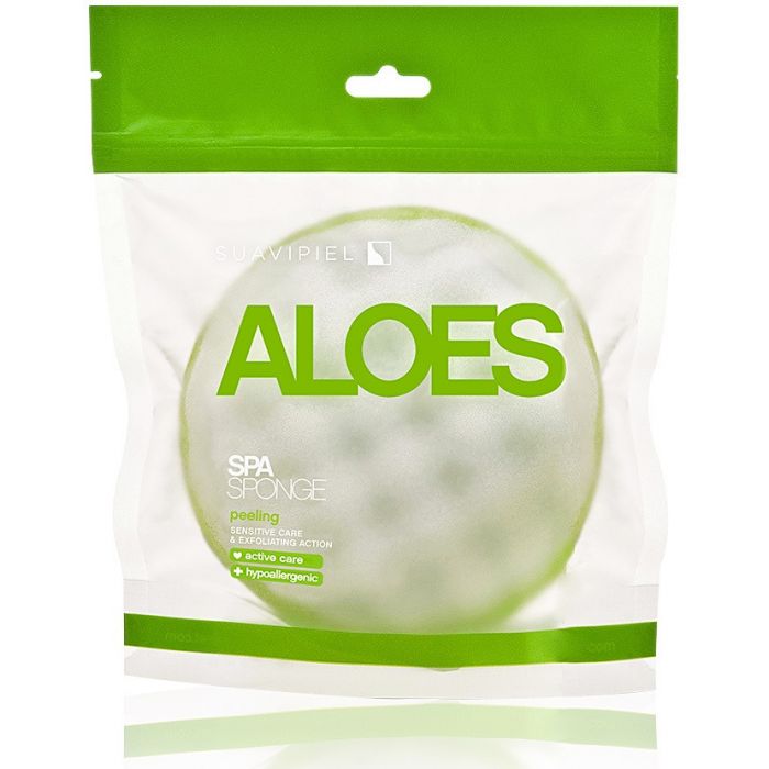 Aloes Esponja Exfoliante Doble Acción de Suavipiel: es una esponja de doble acción que por una cara limpia y protege la piel suavizándola y por la cara ondulada, exfolia en profundidad eliminando las células muertas de tu piel. Está enriquecida con extractos de Aloe Vera, que produce beneficios e interviene en el proceso de hidratación de tu piel.