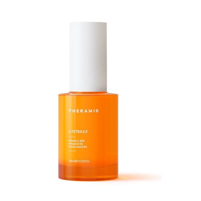 Theramid C-TETRA E.F. Tratamiento Intensivo de Vitamina C contiene un potente efecto antioxidante diseñado para ofrecer una protección óptima frente a los radicales libres, ayudando a recuperar la luminosidad y combatir el fotoenvejecimiento para una piel más luminosa, firme y suave. En esta fórmula encontrarás tres tipos diferentes de vitamina C. ¿Por qué? Muy sencillo, la función de la vitamina C en cada capa de la piel es diferente, y para que su beneficio sea máximo es necesario combinar distintos tipos para sacarle el máximo partido. Entre los muchos tipos de vitamina C que existen en el mercado, hemos seleccionado los más estables y puros para que esta fórmula sea eficaz en todas las capas de la piel donde pueda ser beneficiosa.