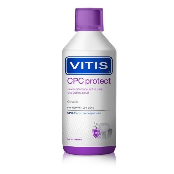Vitis CPC protect es un colutorio que ayuda a reducir la placa dental (biofilm), ofreciendo una protección bucal activa gracias a su elevada concentración de Cloruro de Cetilpiridinio (CPC).