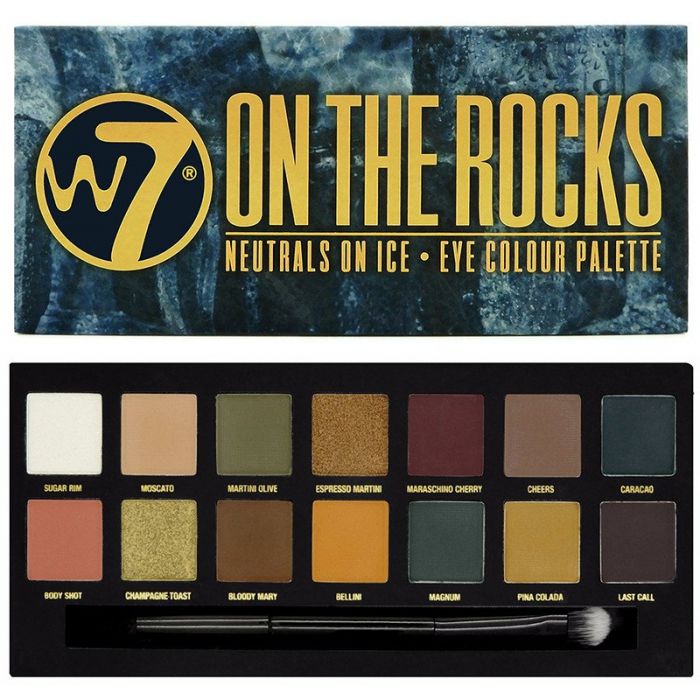 La paleta de sombras On The Rocks W7 es una paleta de sombras con una combinación de 14 sombras en tonos tierra, dorados, amarillos, en acabado metálico y mate.