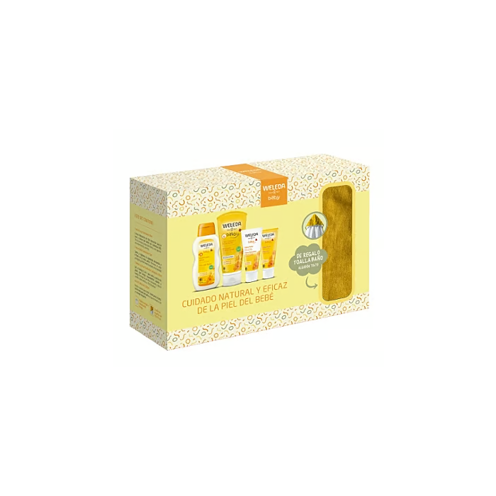 Set completo con los cuidados esenciales para el cuidado de la piel de bebé de Caléndula Baby.