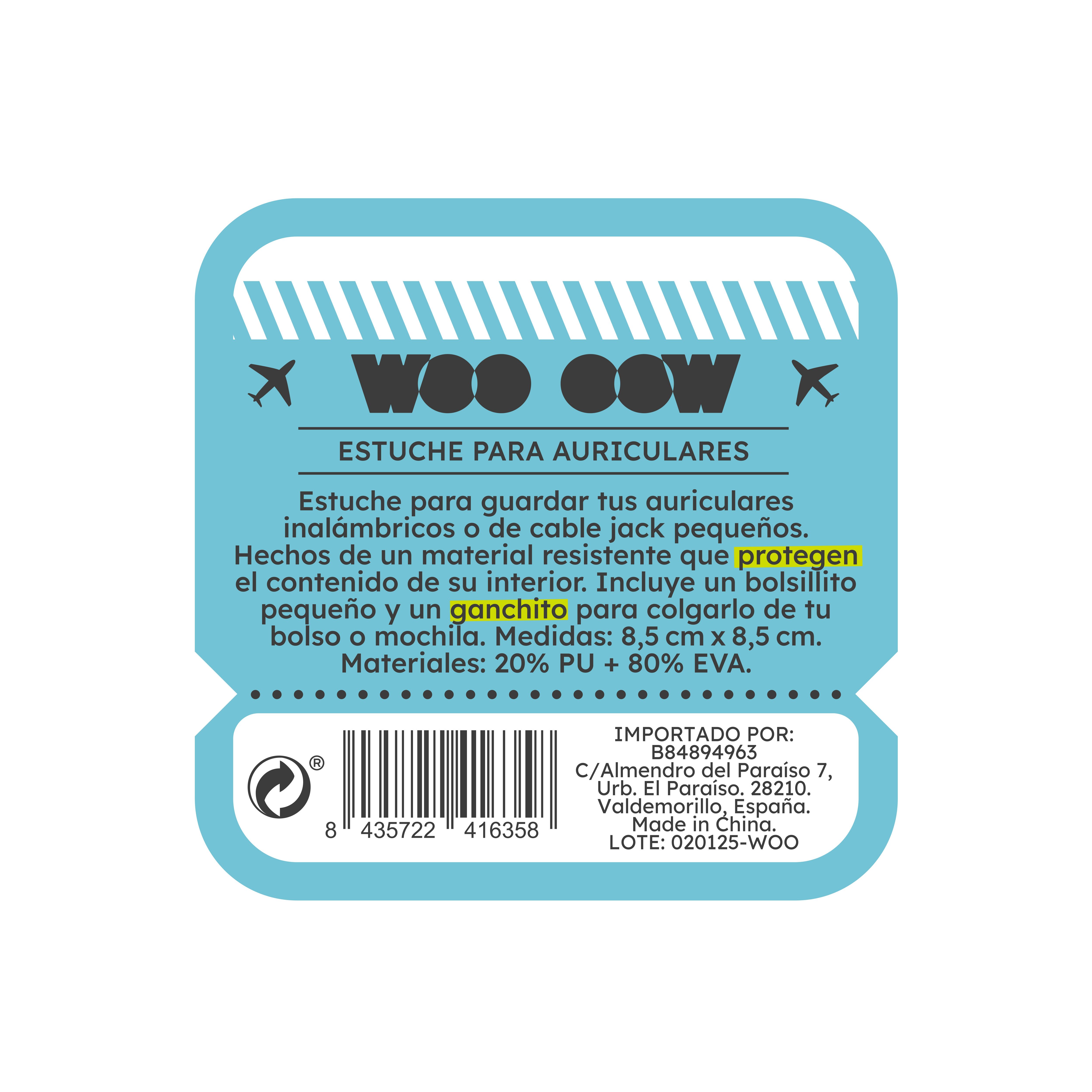 El estuche para auriculares de WOO OOW incluye un bolsillito pequeño donde podrás guardar pequeños accesorios, como cables o adaptadores. Además, cuenta con un práctico ganchito para colgarlo fácilmente de tu bolso o mochila, permitiéndote llevar tus auriculares de forma cómoda y segura.