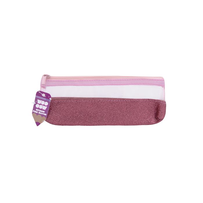 ¡Accesorios que brillan! Este estuche de malla rosa con purpurina y cremallera, es el accesorio ideal para llevar tu material escolar, maquillaje, accesorios… contigo a cualquier parte. Además, su tamaño es perfecto para llevar en tu bolso, mochila o maleta. Medidas: 20x3.5x6cm