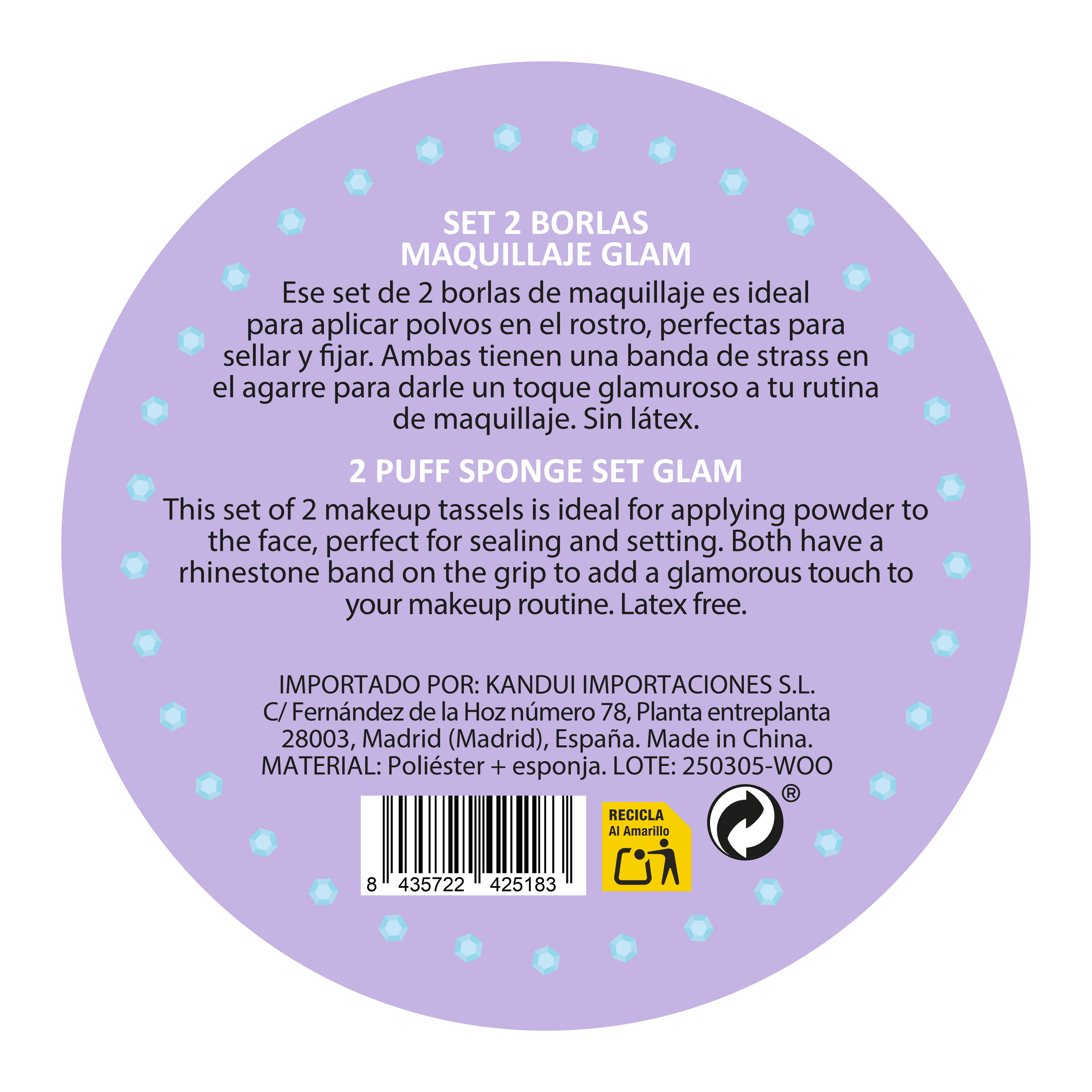 • Diseño glamuroso: Cada borla incluye una banda con strass en el agarre para un toque elegante.
