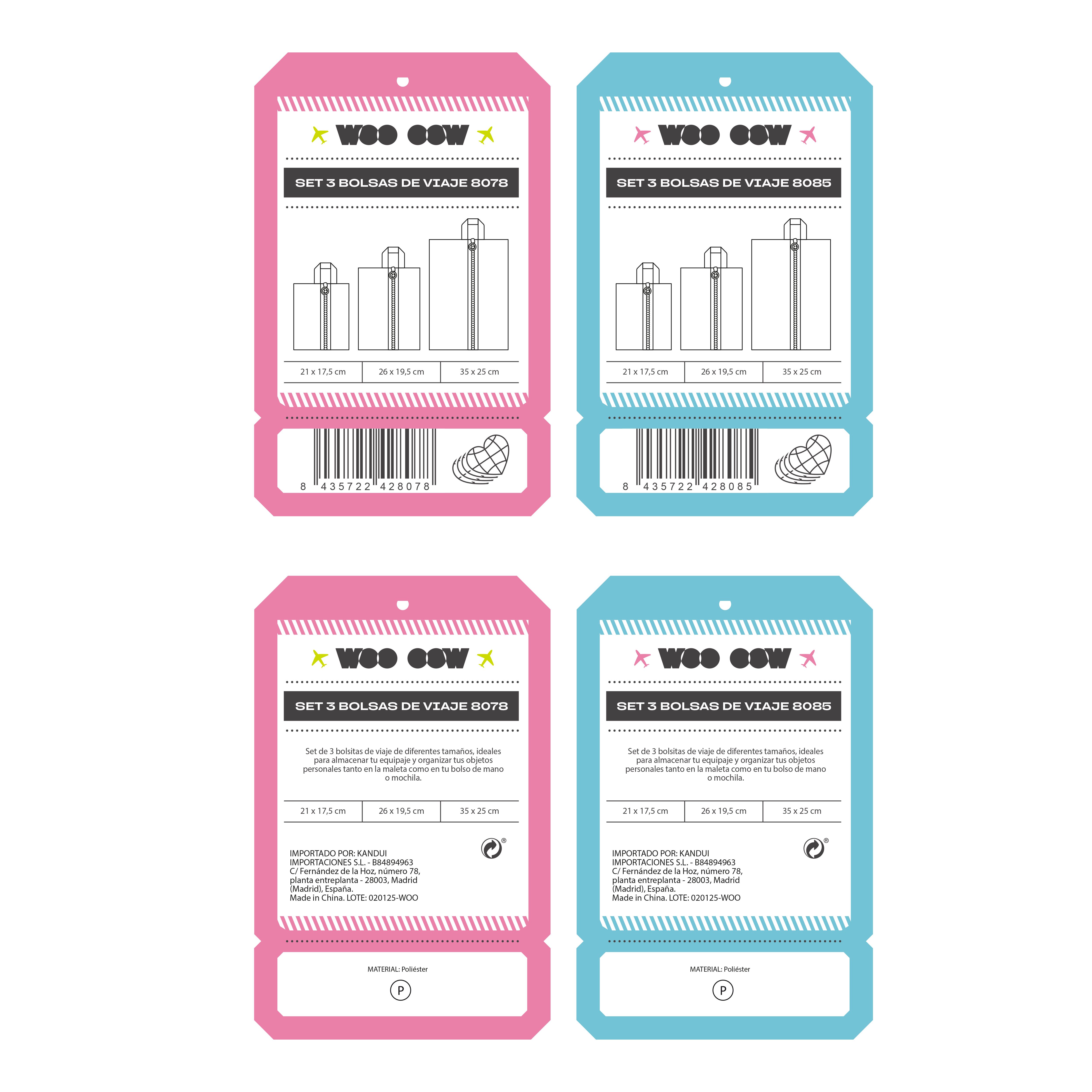 Set de 3 bolsitas de viaje de diferentes tamaños, ideales para almacenar tu equipaje y organizar tus objetos personales tanto en la maleta como en tu bolso de mano o mochila.