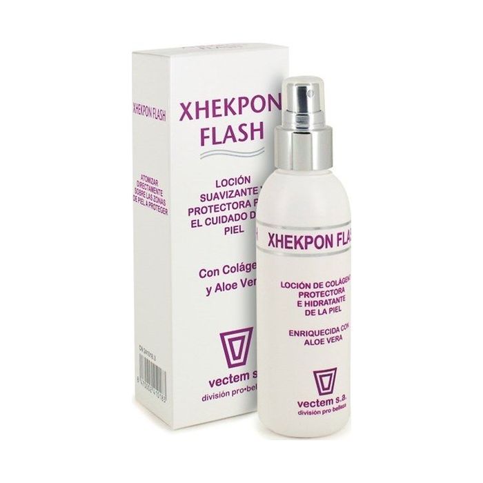 Tónico de colágeno Xhekpon Flash alivio sintomático de los estados congestivos y los enrojecimientos de la piel, para aplicar después de la depilación, limpieza de cutis o por cualquier reacción a algún factor irritante.