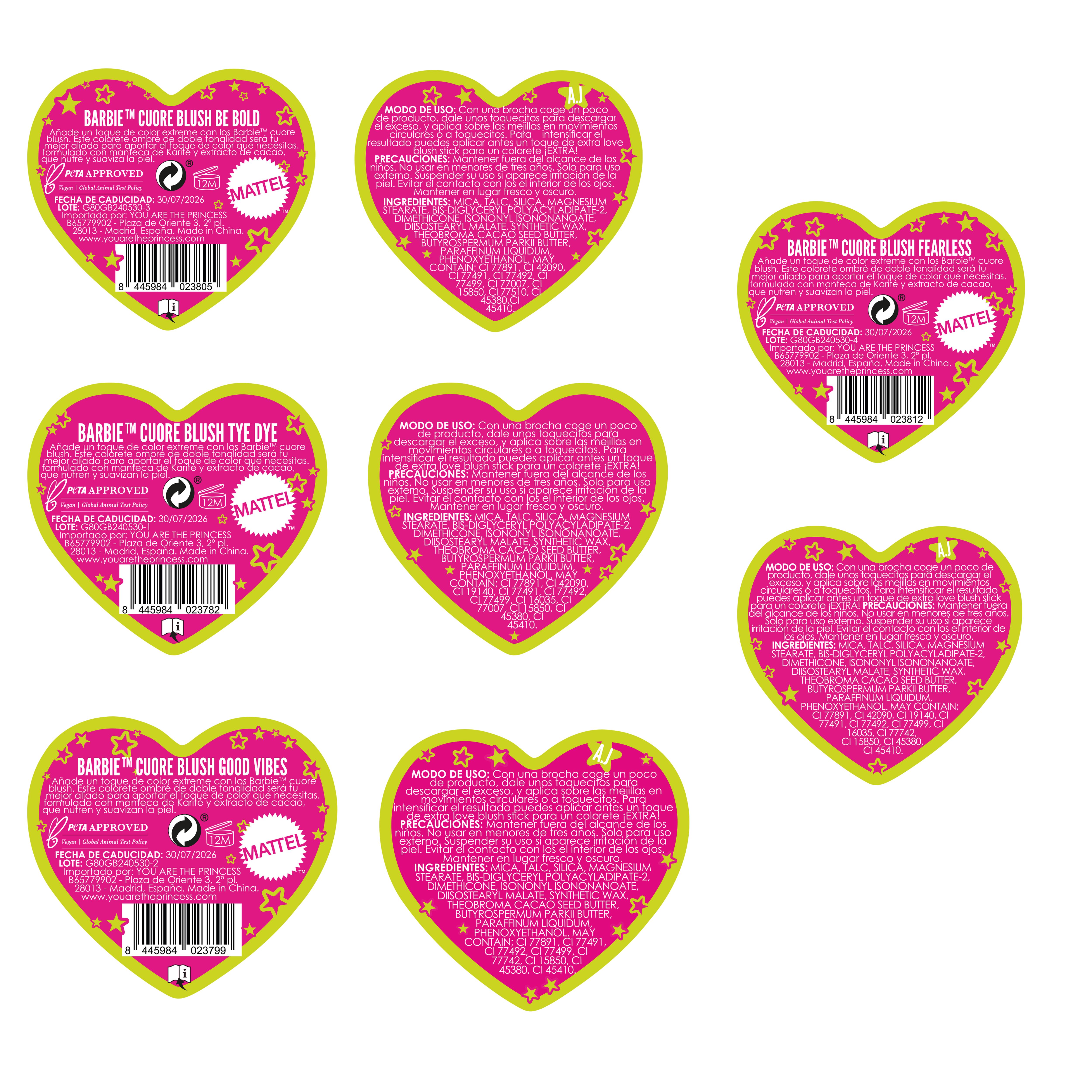 El colorete YOU ARE THE PRINCESS Barbie / Princess Cuore Blush Fearless es ideal para aportar un toque de color modulable al rostro. Su diseño en tonos degradados permite combinar matices para lograr un efecto natural o más intenso, adaptándose a diferentes estilos de maquillaje.