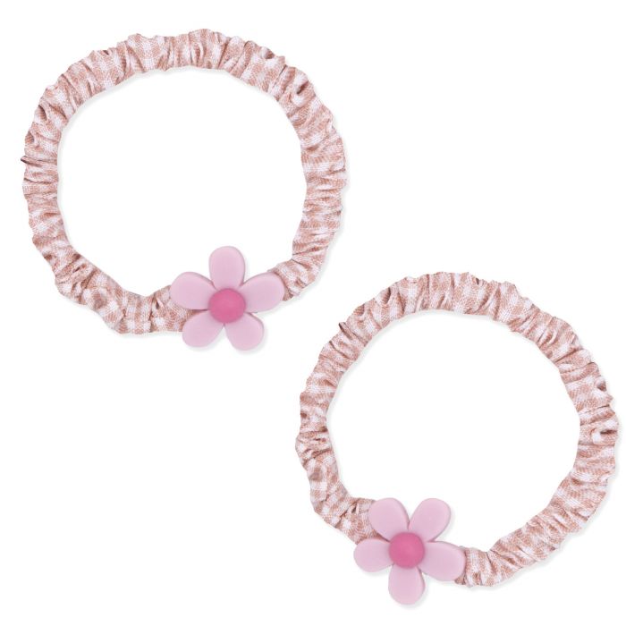 Set 2 coleteros fruncidos con estampado en cuadros vichy rosa y detalle de flor. El accesorio perfecto para decorar los recogidos de tus Princess.