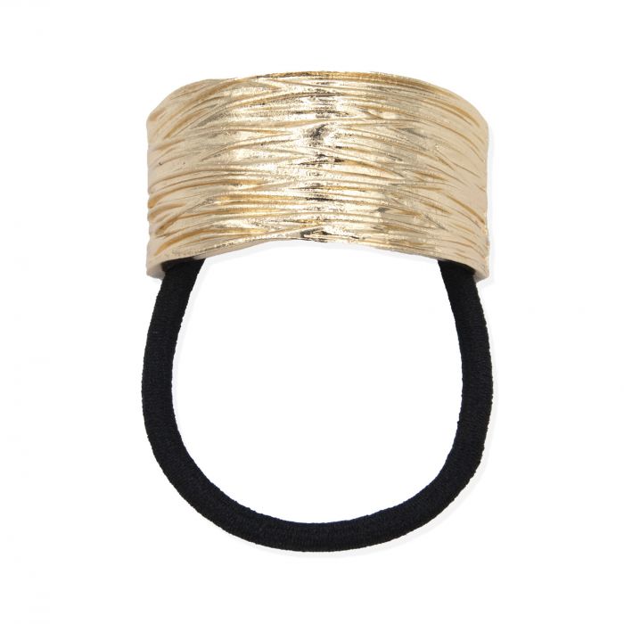 Goma irrompible negra con decoración de metalica ideal para coletas y recogidos.