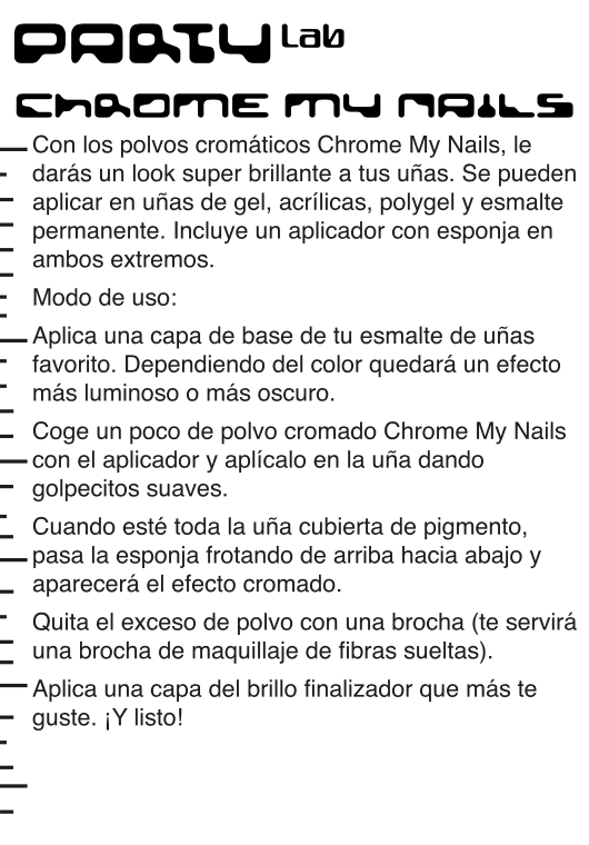 Con los polvos cromáticos para uñas Party Lab Chrome My Nails Metallic Effect de YOU ARE THE PRINCESS, consigue un acabado sofisticado y duradero.