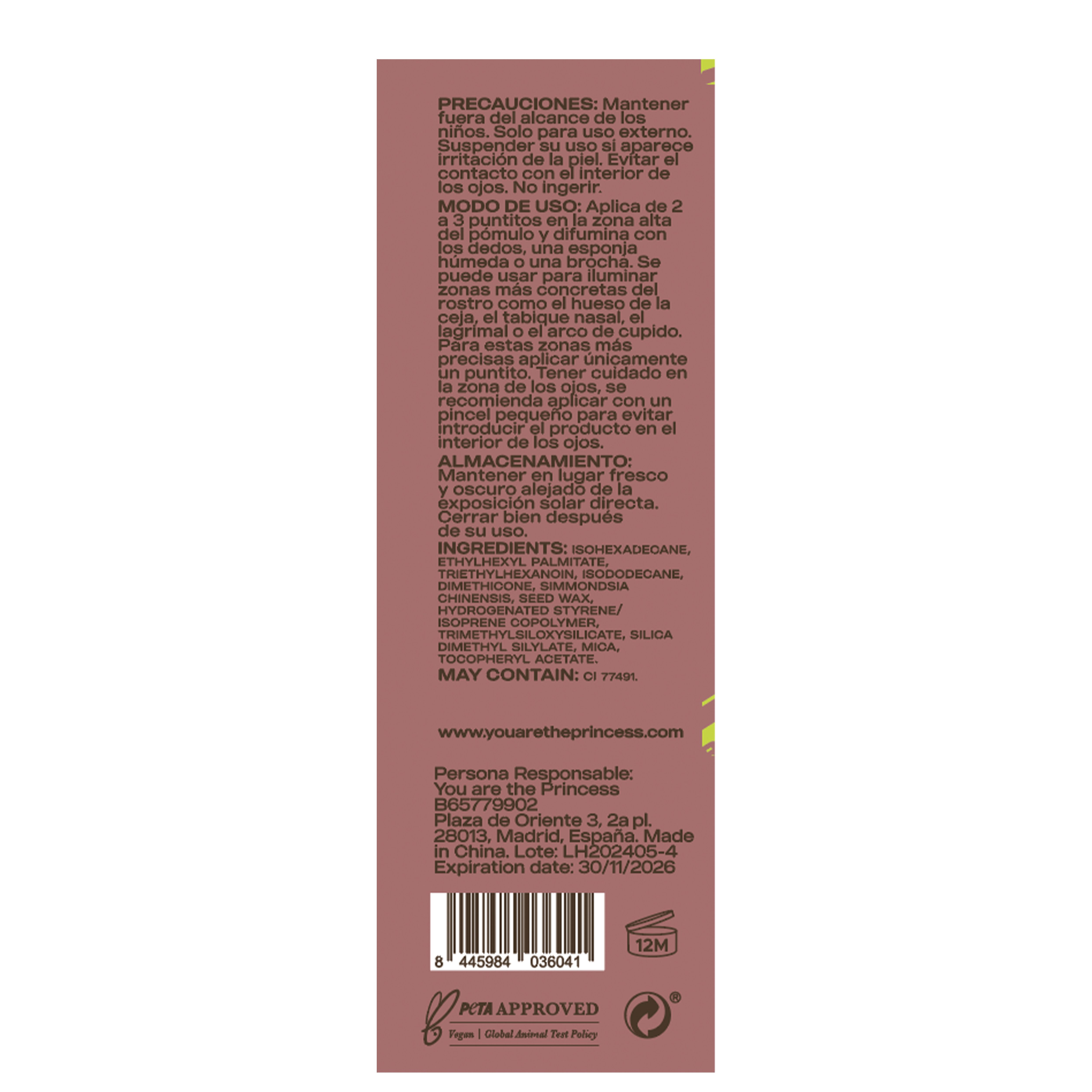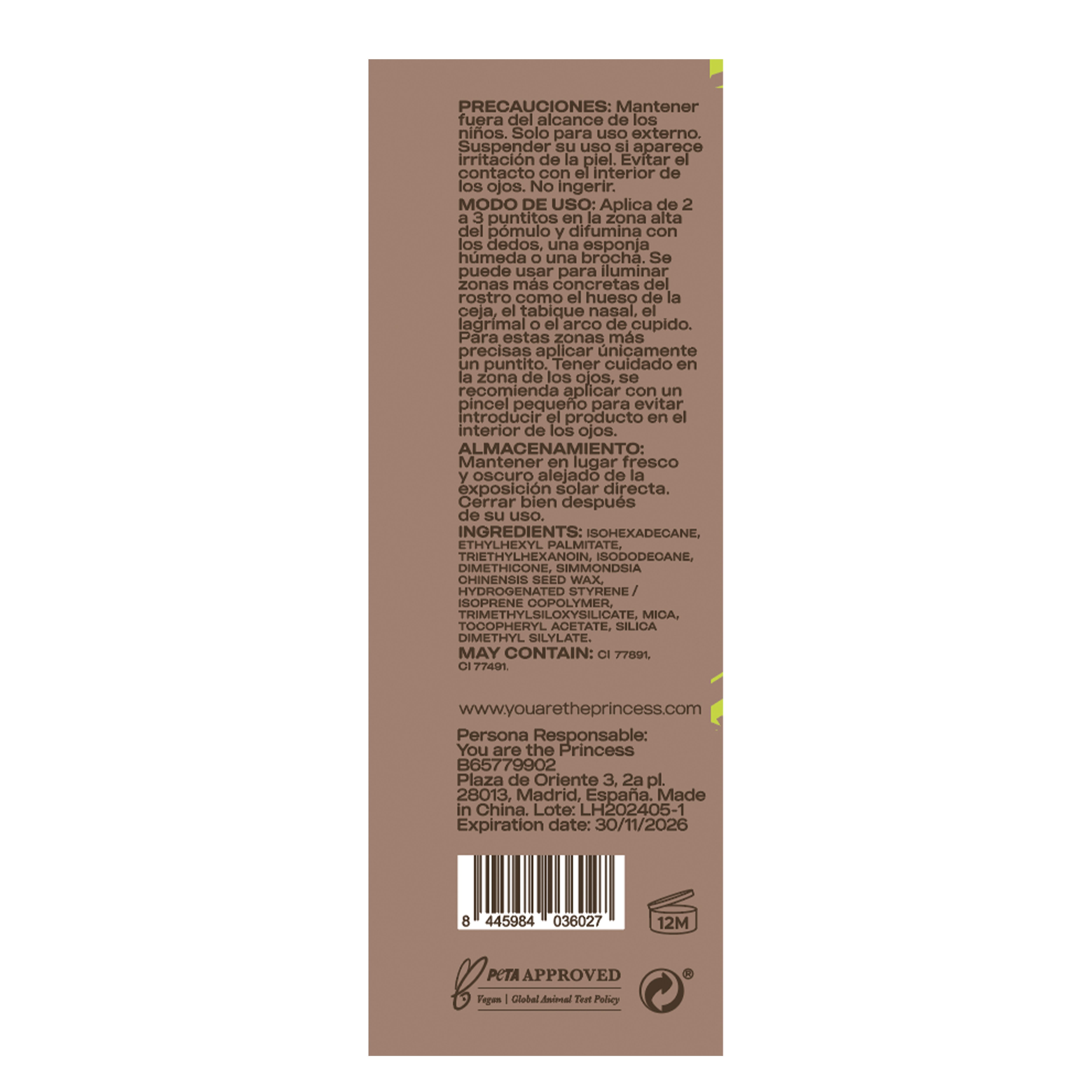 YOU ARE THE PRINCESS presenta el Rescue The Glow Iluminador Líquido, un producto diseñado para realzar la luminosidad del rostro. Se aplica con facilidad gracias a su textura fluida, lo que permite integrarlo a la rutina diaria de maquillaje sin complicaciones.