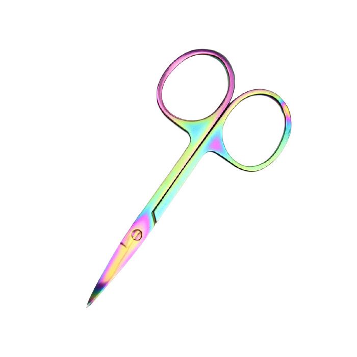 Tijeras metálicas de acero inoxidable con efecto holográfico y punta curva. Ideales para hacer tu manicura y pedicura.