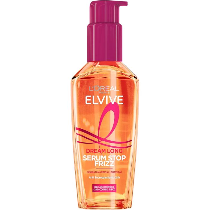 Descubre el Sérum Anti-Encrespamiento sin Aclarado ELVIVE Dream Long Stop Frizz de L'OREAL PARIS, especialmente diseñado para cabello largo.