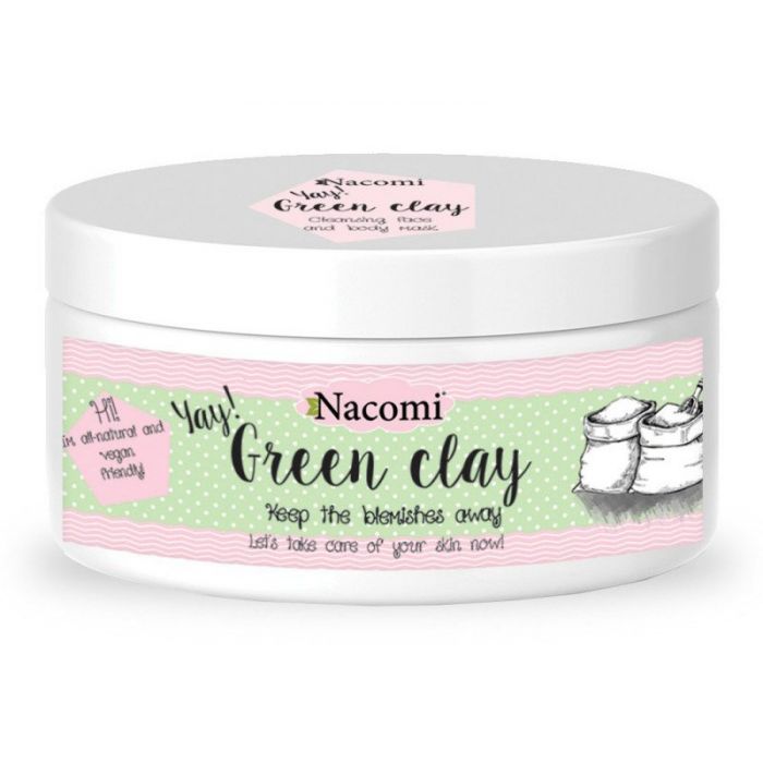 La Mascarilla Facial y Corporal de Arcilla Verde de Nacomi limpia profundamente los poros y activa la piel para regenerarla más rápidamente. Contiene también gran cantidad de silicio y zinc, lo cual normaliza la piel y regula la secreción de sebo, así permanece la piel sin brillo durante mucho tiempo. La arcilla verde es un ingrediente tradicional, natural y rico en micro-nutrientes de los cosméticos que estimulan los procesos de regeneración de la piel. Este tipo de arcilla es excelente para el acné.