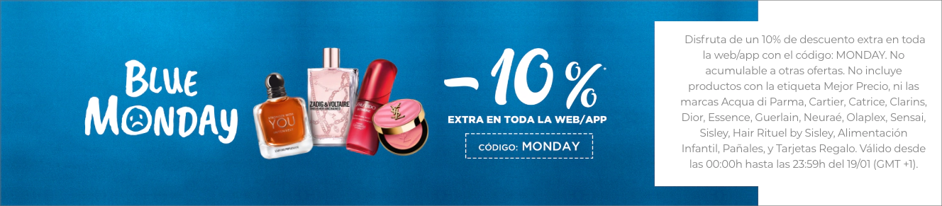 Consigue los mejores chollos y ahorra a lo grande con nuestra selección de promociones activas. Toda una amplia selección de cupones y códigos de descuento en nuestras categorías estrella como perfumes, maquillaje, cosmética, cabello, corporales, higiene, parafarmacia y productos para bebés.