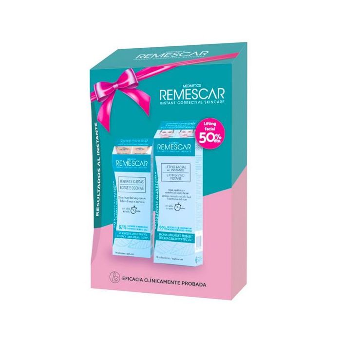 Este Pack Bolsas y Ojeras de REMESCAR incluye REMESCAR Lifting Facial al Instante, un producto diseñado para alisar, rearmar y redefinir el óvalo facial de manera inmediata.