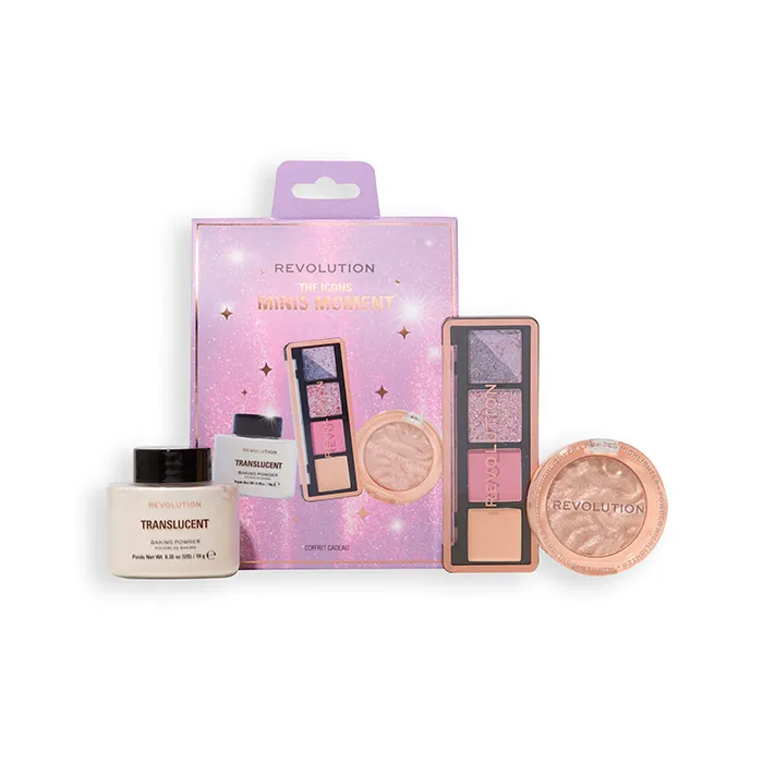 ¡Lleva el cofre de maquillaje REVOLUTION Set The Icons Minis Moment a todas partes y luce radiante en cualquier momento con los mejores productos de REVOLUTION!