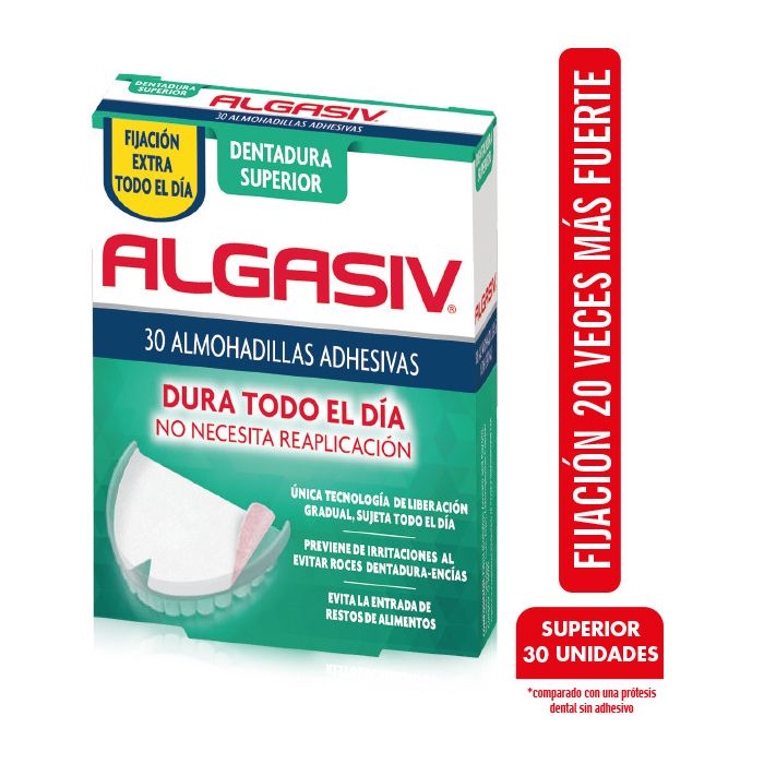 Almofadas finas que fixam e adaptam a dentadura, protegendo contra irritações e outros desconfortos, compostas por duas camadas exteriores de celulose e uma camada interior com dois poderosos adesivos naturais: Polyvox e Alginato de Sódio (extrato de algas marinhas). Formato, pack com 18 unidades.