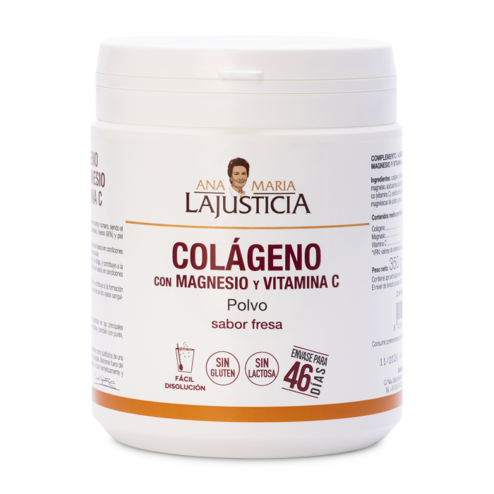 ANA MARIA LAJUSTICIA Colagénio com Magnésio e Vitamina C ajuda a regenerar o seu desgaste e envelhecimento, contribuindo para manter em bom estado as articulações, ossos, pele e para estar em forma.